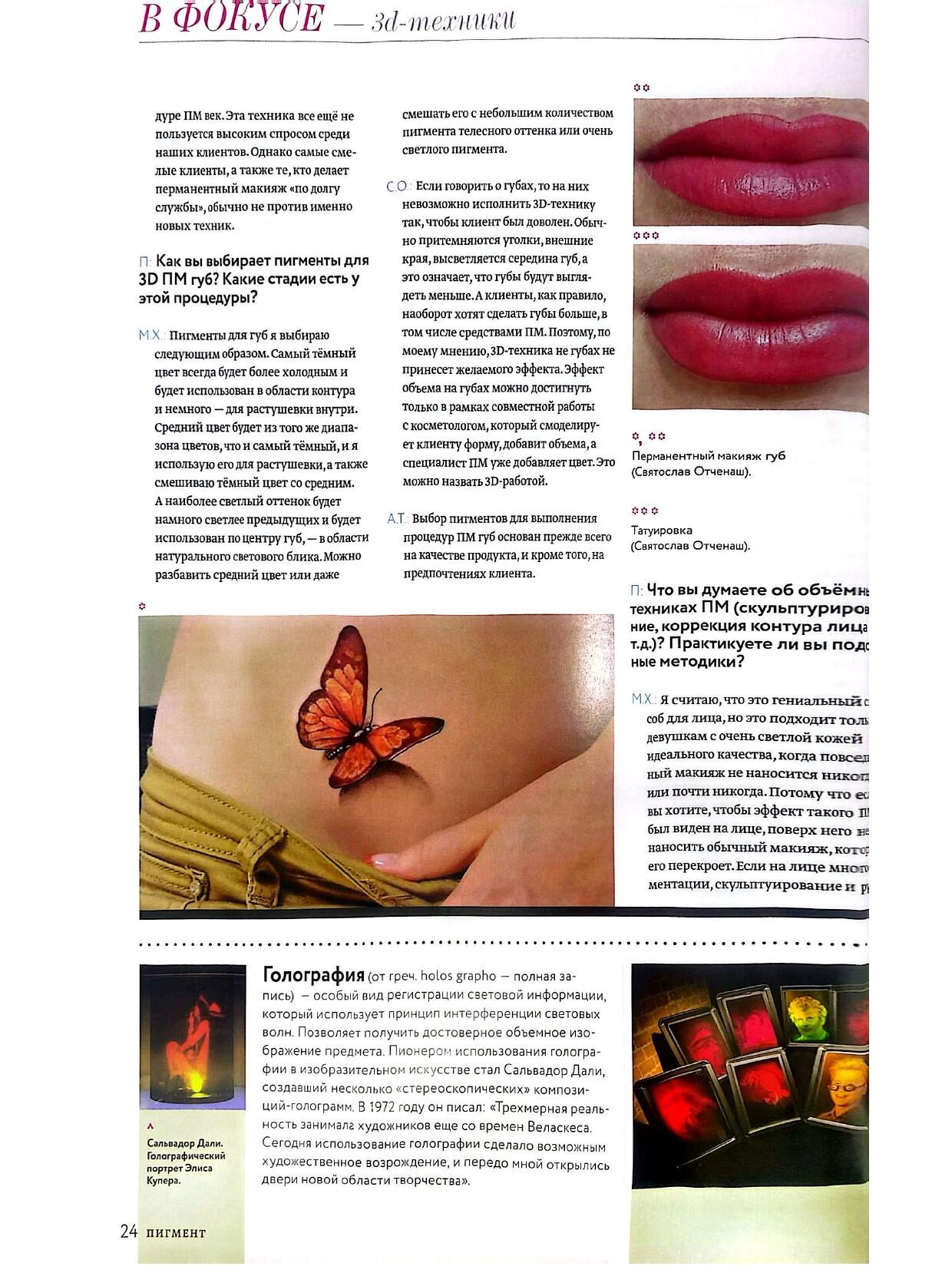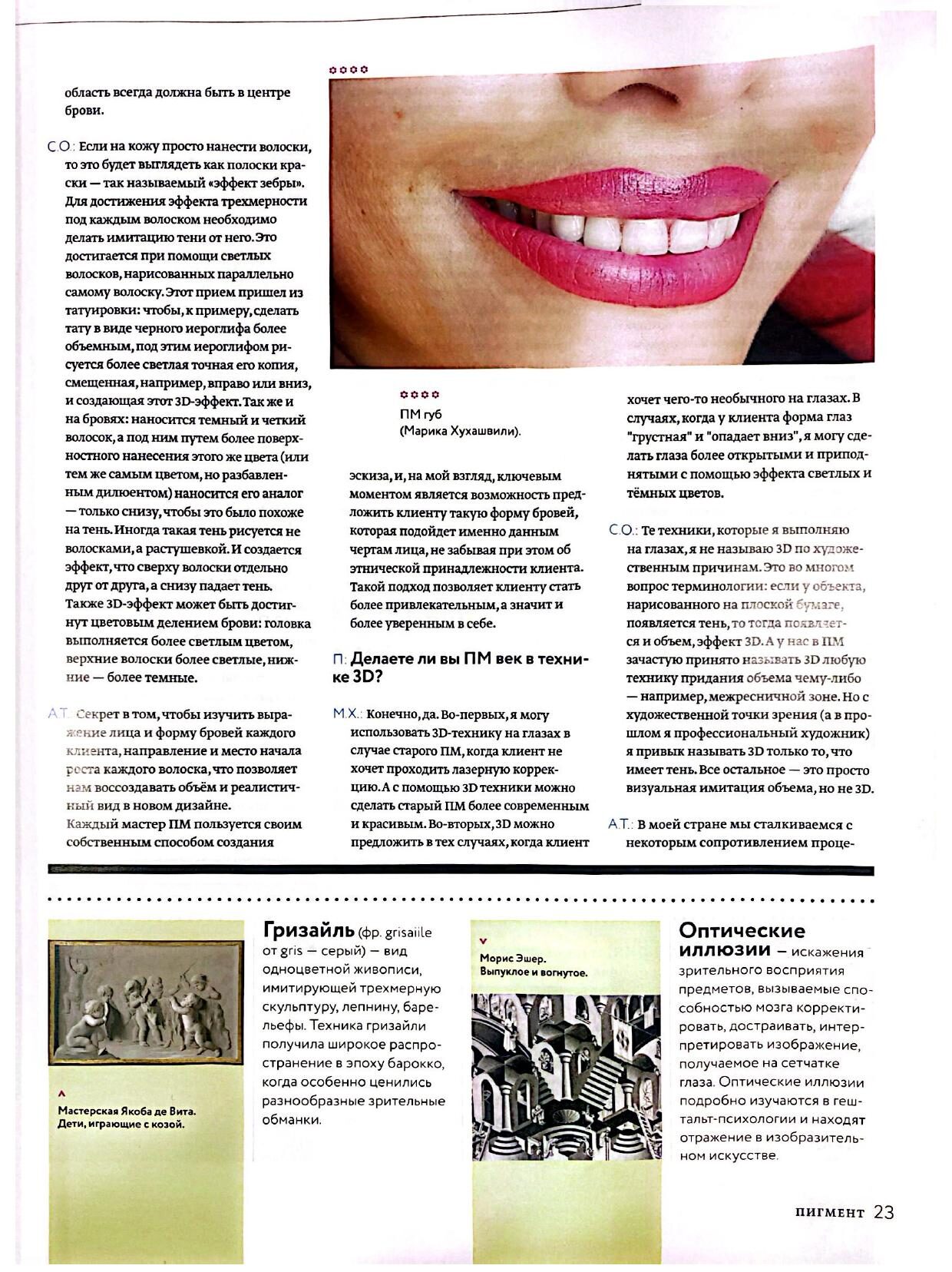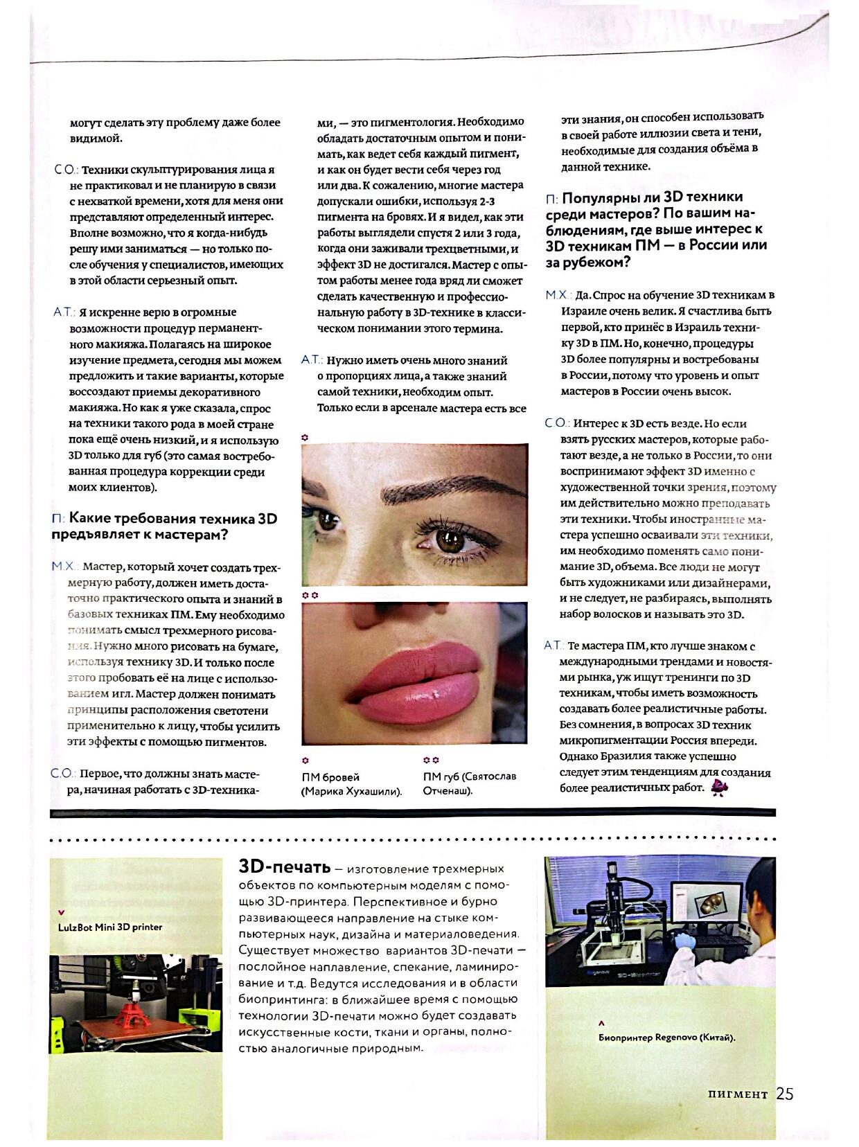 בכתבה רחבה ומעמיקה שיתפה מריקה מהניסיון הרב שצברה, ודיברה על טכניקות העבודה החדשניות שהיא מיישמת – במיוחד בתחום טכניקות ה-3D לעיצוב שפתיים, גבות וקווי שיער.