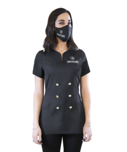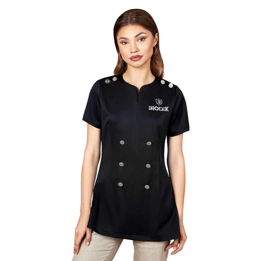 חלוק שחור עם רוכסן מאחור , כפתורים ולוגו BIOTEK מבית ביוטק איטליה